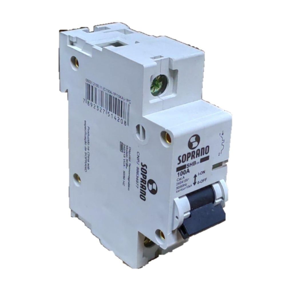 DISJUNTOR DIN (A) MONOFÁSICO (K) 100Amperes SHB1-C100A ***10KA*** (05121.1100.11) Soprano