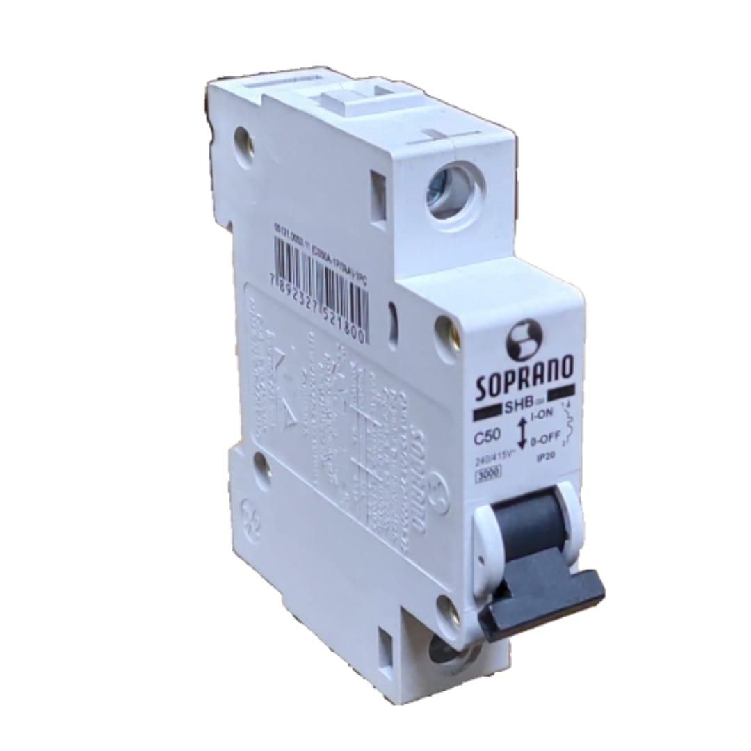 DISJUNTOR DIN MONOFÁSICO 50AMPERES SHB1-L50A ***6KA*** (05121.4050.11) SOPRANO (CX12)
