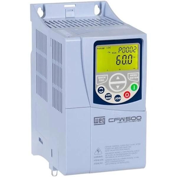 Inversor de Frequência Weg CFW500 Monofásico 3CV 220V. O Inversor de Frequência é um acionamento de velocidade variável de alta performance para motores de indução trifásicos, ideal para aplicações em máquinas ou equipamentos que necessitam de controle preciso e facilidade de operação. Os Inversores de Frequência Weg, da linha CFW500, oferecem excelente desempenho, flexibilidade e ótimo custo benefício, permitindo uma solução otimizada.